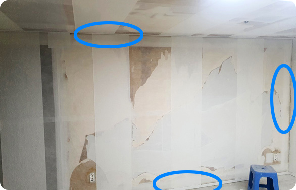 겹침시공으로, 벽지간 이음매가 잘 보여요.