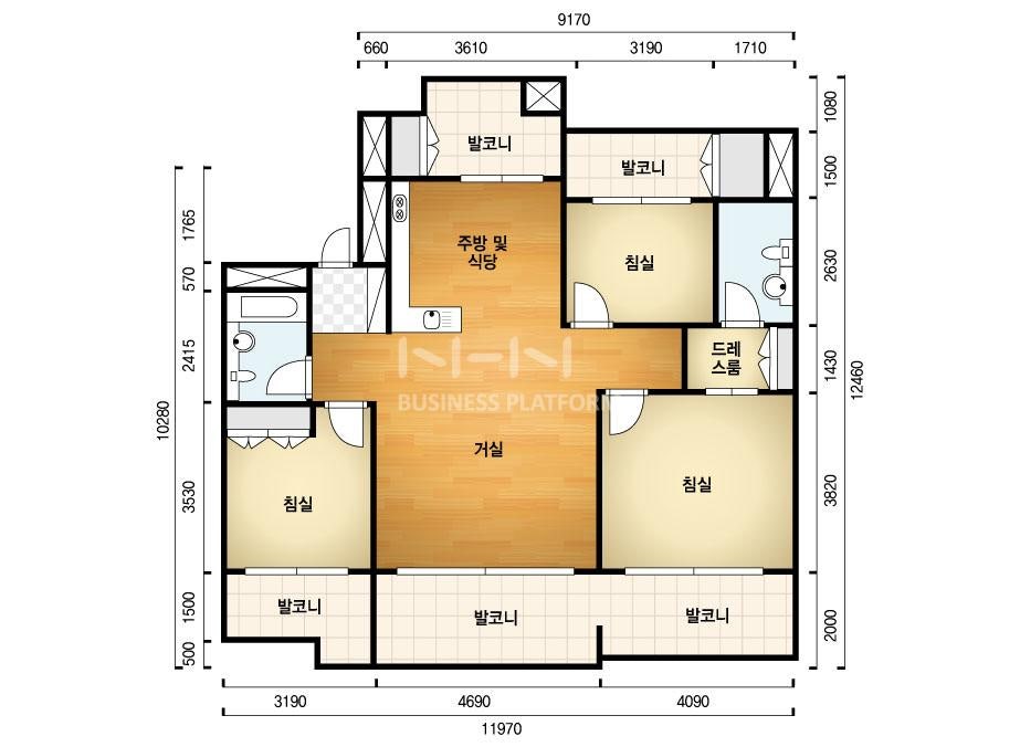 (거실, 서재, 드레스룸은 확장됨)